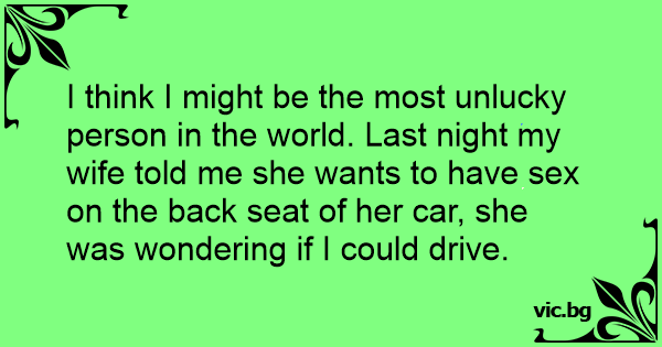 I think I might be the most unlucky person in the world. Last night my wife told me she wants to have sеx on the back seat of her car, she was wondering if I could drive.