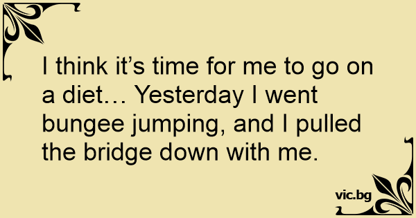 I think it’s time for me to go on a diet… Yesterday I went bungee jumping, and I pulled the bridge down with me.