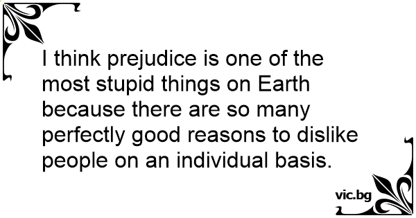 I think prejudice is one of the most sтuрid things on Earth because there are so many perfectly good reasons to dislike people on an individual basis.