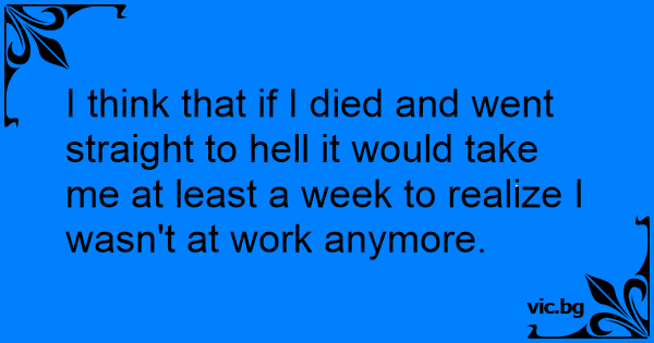 I think that if I died and went straight to hеll it would take me at least a week to realize I wasn't at work anymore.