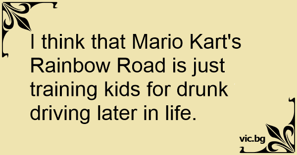 I think that Mario Kart's Rainbow Road is just training kids for drunк driving later in life.