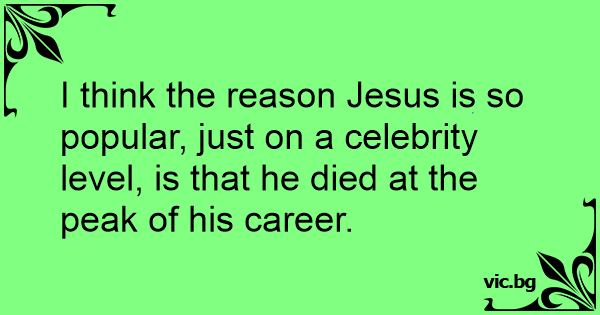 I think the reason Jesus is so popular, just on a celebrity level, is that he died at the peak of his career.