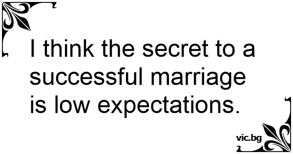 I think the secret to a successful marriage is low expectations.