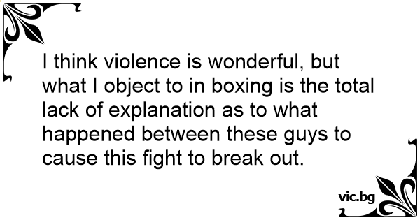 I think violence is wonderful, but what I object to in boxing is the total lack of explanation as to what happened between these guys to cause this fight to break out.