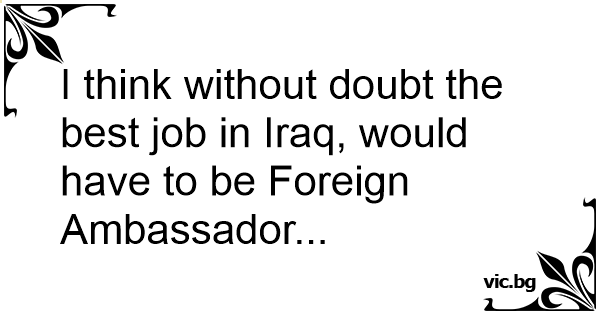 I think without doubt the best job in Iraq, would have to be Foreign Ambassador...