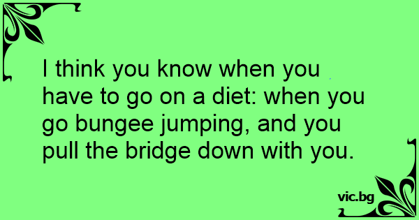 I think you know when you have to go on a diet: when you go bungee jumping, and you pull the bridge down with you.