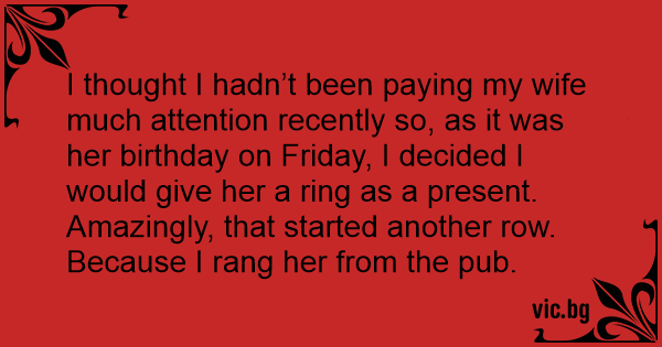 I thought I hadn’t been paying my wife much attention recently so, as it was her birthday on Friday, I decided I would give her a ring as a present.