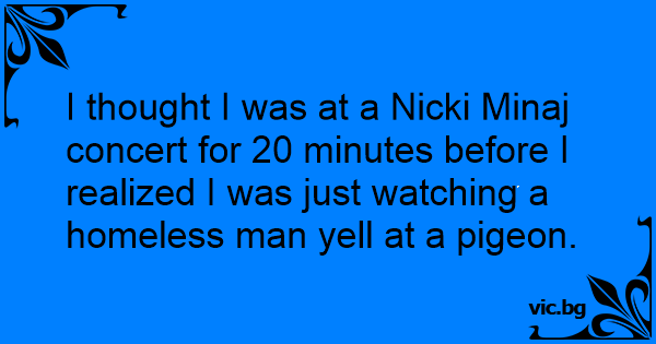I thought I was at a Nicki Minaj concert for 20 minutes before I realized I was just watching a homeless man yell at a рigеоn.