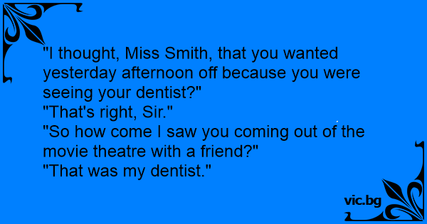 "I thought, Miss Smith, that you wanted yesterday afternoon off because you were seeing your dentist?"