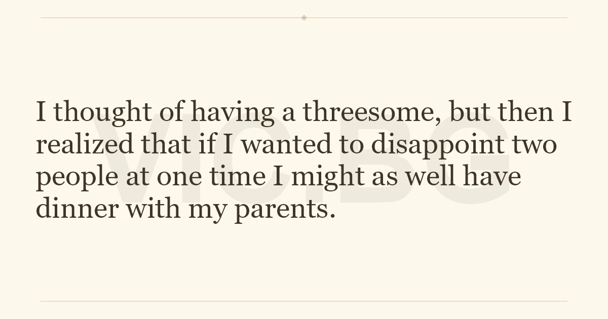 I thought of having a тhrееsоме, but then I realized that if I wanted to disappoint two people at one time I might as well have dinner with my parents.