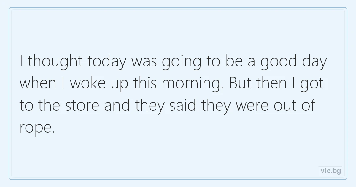 I thought today was going to be a good day when I woke up this morning. But then I got to the store and they said they were out of rope.