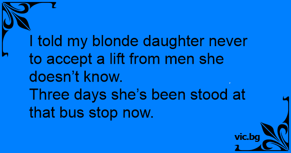 I told my blonde daughter never to accept a lift from men she doesn’t know.