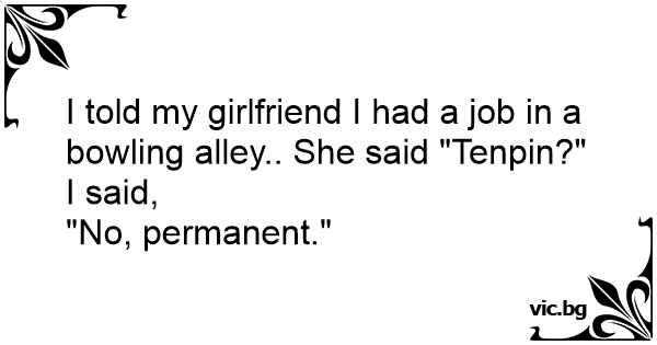 I told my girlfriend I had a job in a bowling alley.. She said "Tenpin?"