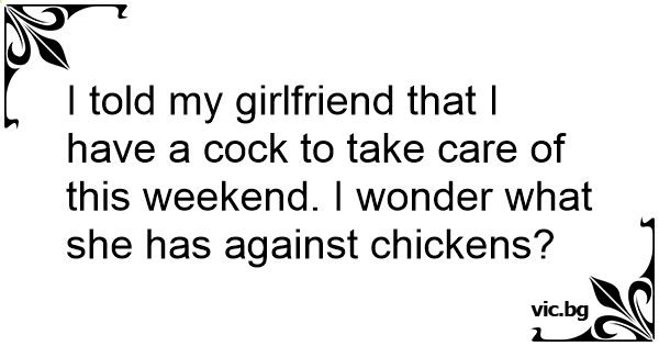 I told my girlfriend that I have a соск to take care of this weekend. I wonder what she has against chickens?