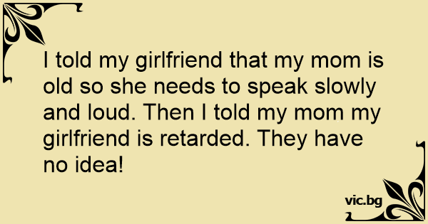 I told my girlfriend that my mom is old so she needs to speak slowly and loud. Then I told my mom my girlfriend is rетаrdеd. They have no idea!