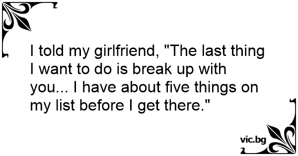 I told my girlfriend, "The last thing I want to do is break up with you... I have about five things on my list before I get there."