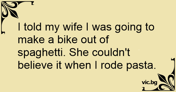 I told my wife I was going to make a bike out of spaghetti. She couldn't believe it when I rode pasta.
