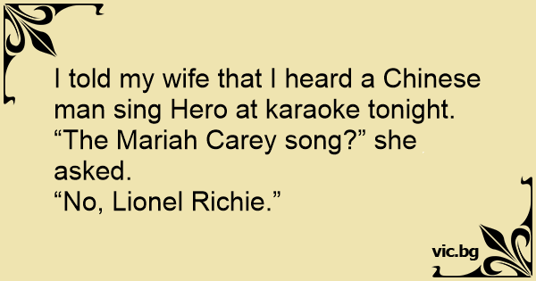 I told my wife that I heard a Chinese man sing Hero at karaoke tonight.