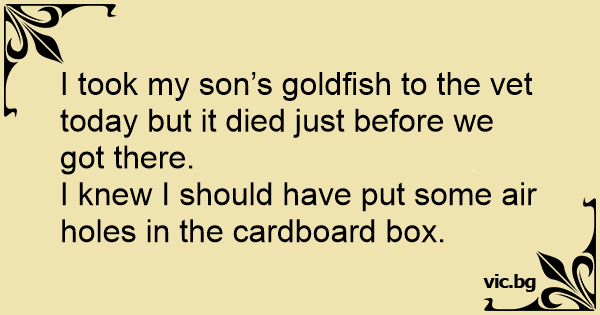 I took my son’s goldfish to the vet today but it died just before we got there.