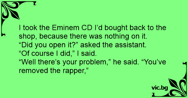 I took the Eminem CD I’d bought back to the shop, because there was nothing on it.