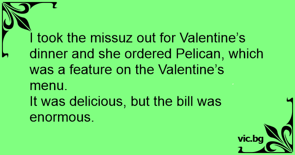 I took the missuz out for Valentine’s dinner and she ordered Pelican, which was a feature on the Valentine’s menu.