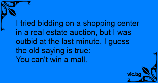 I tried bidding on a shopping center in a real estate auction, but I was outbid at the last minute. I guess the old saying is true: