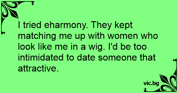 I tried eharmony. They kept matching me up with women who look like me in a wig. I'd be too intimidated to date someone that attractive.