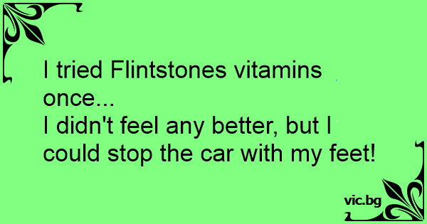 I tried Flintstones vitamins once...<br />I didn't feel any better, but I could stop the car with my feet!