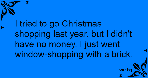I tried to go Christmas shopping last year, but I didn't have no money. I just went window-shopping with a brick.