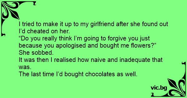 “Do you really think I’m going to forgive you just because you apologised and bought me flowers?” She sobbed.
