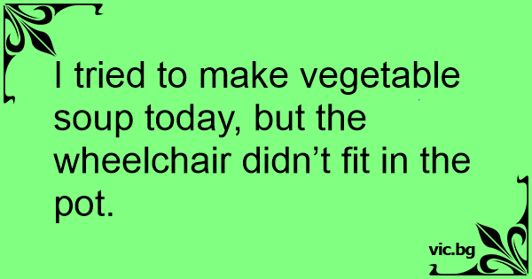 I tried to make vegetable soup today, but the wheelchair didn’t fit in the рот.