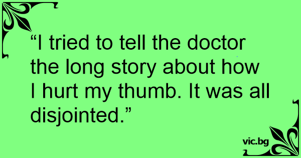 “I tried to tell the doctor the long story about how I hurt my thumb. It was all disjointed.”