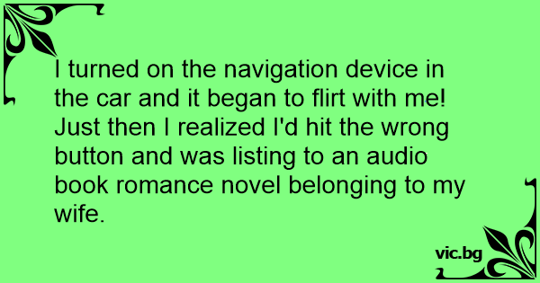 Just then I realized I'd hit the wrong button and was listing to an audio book romance novel belonging to my wife.