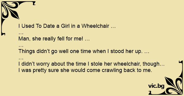 I didn’t worry about the time I stole her wheelchair, though… I was pretty sure she would come crawling back to me.