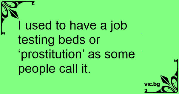 I used to have a job testing beds or ‘prostitution’ as some people call it.
