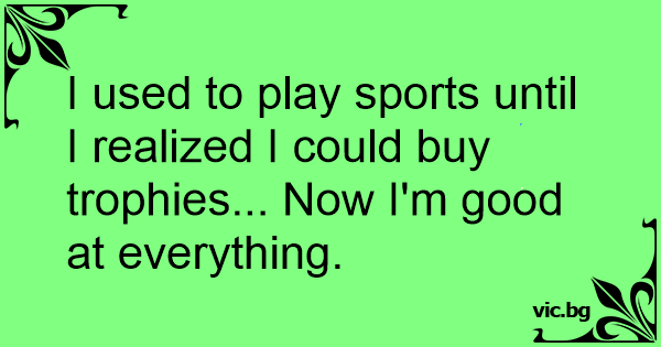 I used to play sports until I realized I could buy trophies... Now I'm good at everything.