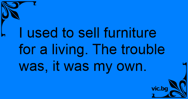 I used to sell furniture for a living. The trouble was, it was my own.