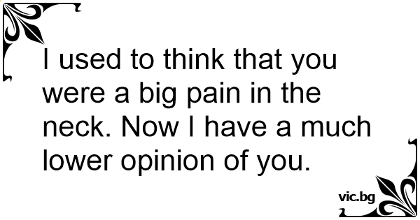 I used to think that you were a big pain in the neck. Now I have a much lower opinion of you.