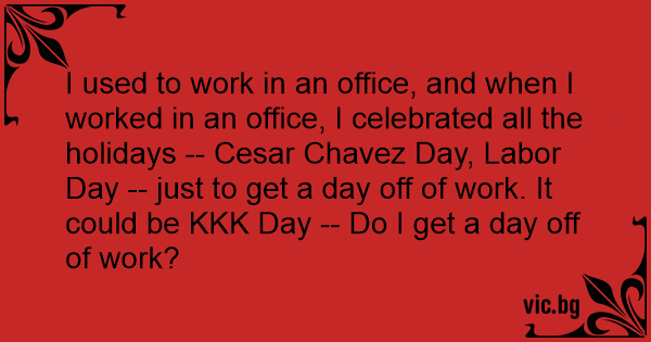 I used to work in an office, and when I worked in an office, I celebrated all the holidays -- Cesar Chavez Day, Labor Day -- just to get a day off of work. It could be ККК Day -- Do I get a day off of work?