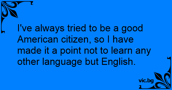 I've always tried to be a good American citizen, so I have made it a point not to learn any other language but English.
