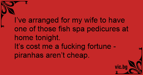 I’ve arranged for my wife to have one of those fish spa pedicures at home tonight.