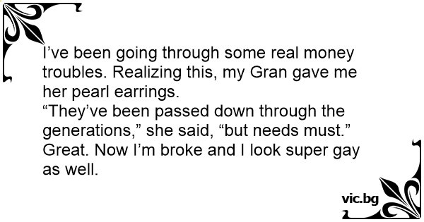 I’ve been going through some real money troubles. Realizing this, my Gran gave me her pearl earrings.