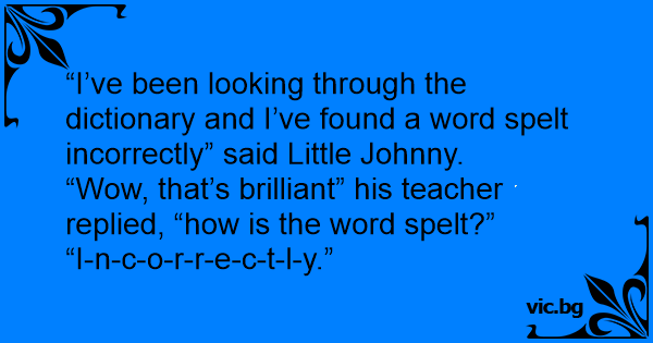 “I’ve been looking through the dictionary and I’ve found a word spelt incorrectly” said Little Johnny.