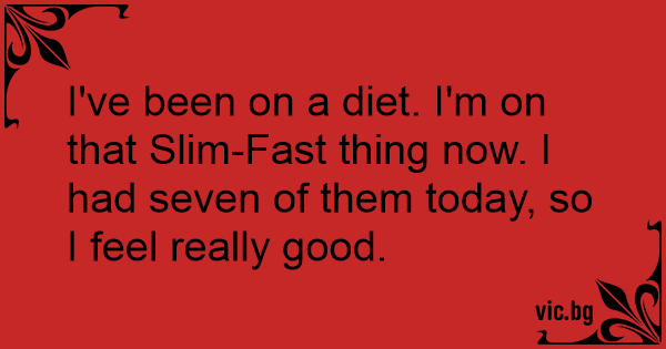 I've been on a diet. I'm on that Slim-Fast thing now. I had seven of them today, so I feel really good.