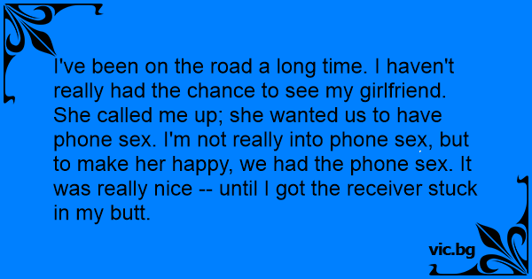I've been on the road a long time. I haven't really had the chance to see my girlfriend. She called me up; she wanted us to have phone sеx. I'm not really into phone sеx, but to make her happy, we had the phone sеx. It was really nice -- until I got the receiver stuck in my вuтт.