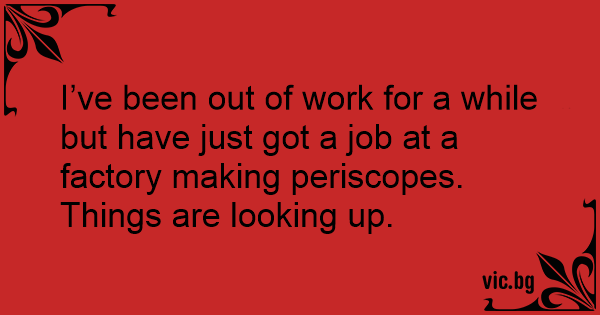 I’ve been out of work for a while but have just got a job at a factory making periscopes.