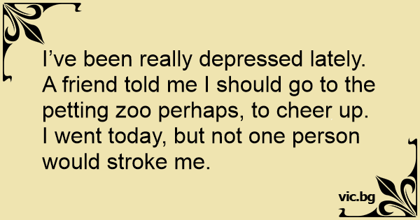 I’ve been really depressed lately. A friend told me I should go to the petting zoo perhaps, to cheer up.
