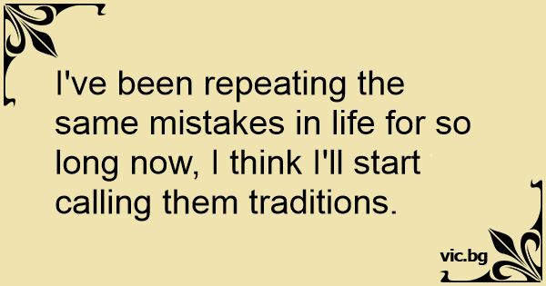 I've been repeating the same mistakes in life for so long now, I think I'll start calling them traditions.