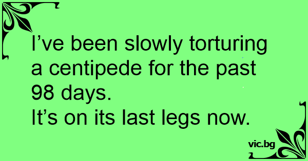 I’ve been slowly torturing a centipede for the past 98 days.