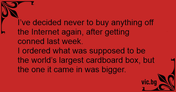 I’ve decided never to buy anything off the Internet again, after getting conned last week.
